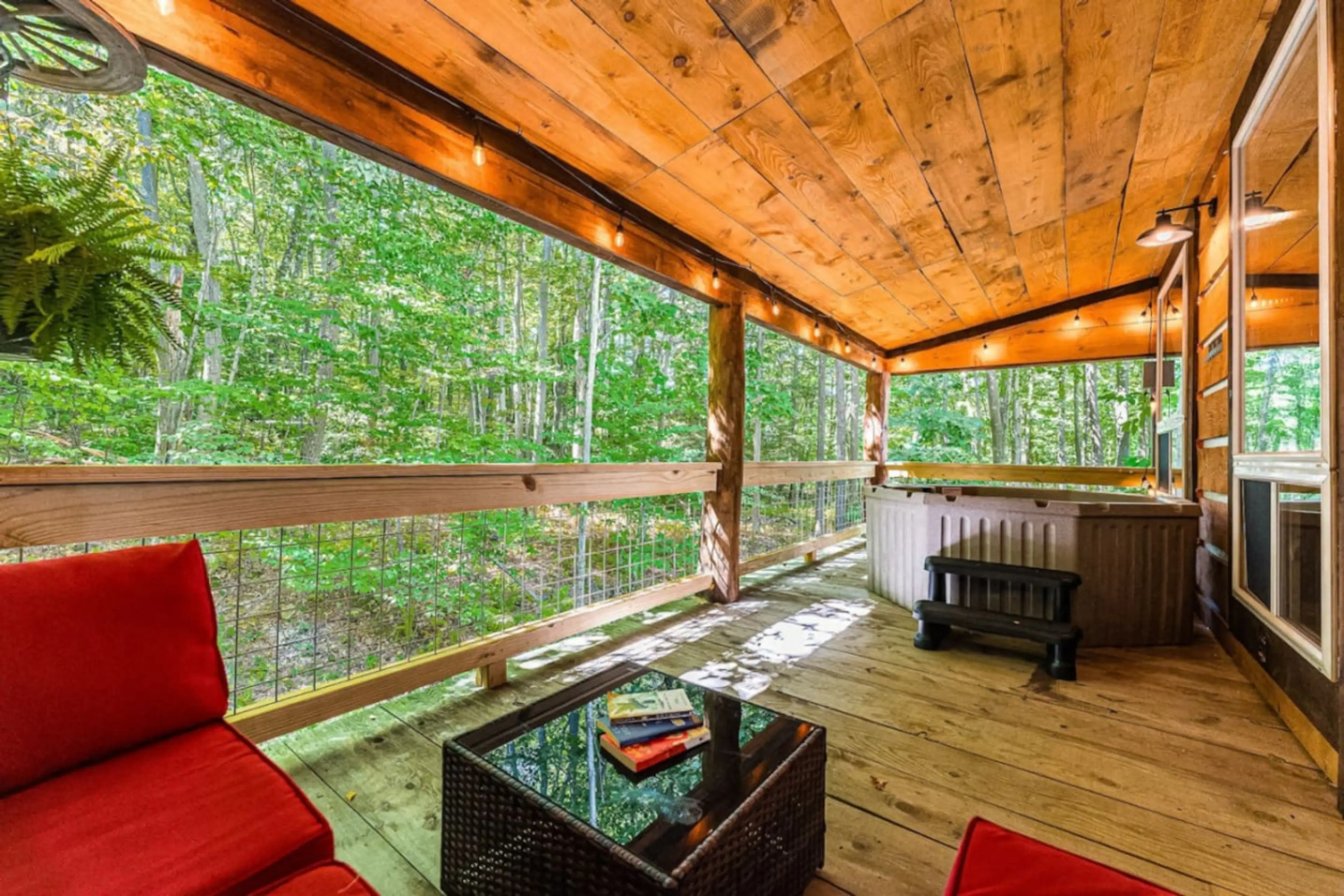 Escape to our charming Spruce Cabin, nestled among the trees & designed for ultimate relaxation. Just a 1/4 mile from local restaurants & shopping, you'll enjoy the perfect blend of nature & convenience. This brand new cabin features 2 cozy BRs, full kitchen, hot tub & a modern bathroom, making it i...